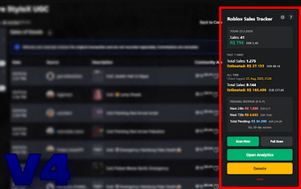 Roblox Sales Trackerは、Robloxグループのオーナーや開発者が販売パフォーマンスを簡単に監視するために設計された無料のChrome拡張機能です。このツールは、ユーザーのグループの販売ページを自動的にスキャンし、今日の販売、過去7日間の週間パフォーマンス、創設以来の累積統計などの重要な指標を表示する包括的な販売インテリジェンスダッシュボードを提供します。データはユーザーフレンドリーな形式で提示され、獲得した総Robuxと行われた販売の数を簡単に追跡できます。